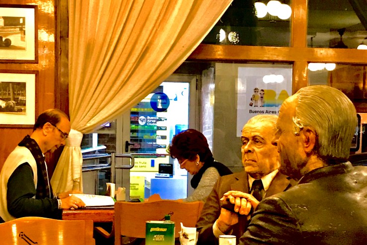 Os destinos da Quilmes e da Fernet, a subversão das relações de poder entre Coca e Pepsi, esses detalhes que denunciam a lealdade dos portenhos aos mundos estranhos de Borges e Bioy-Casares, tudo talvez estivesse nos preparando, a mim e à Patrícia, para o surgimento de Don Teodoro, 80 anos, taxista, último sorriso registrado provavelmente em 1978. Foi com Don Teodoro que descobrimos que o Tigre é o programa mais lindo para um domingo de sol, e não San Telmo. “Se soubesse que iam a San Telmo, não os teria deixado entrar”.